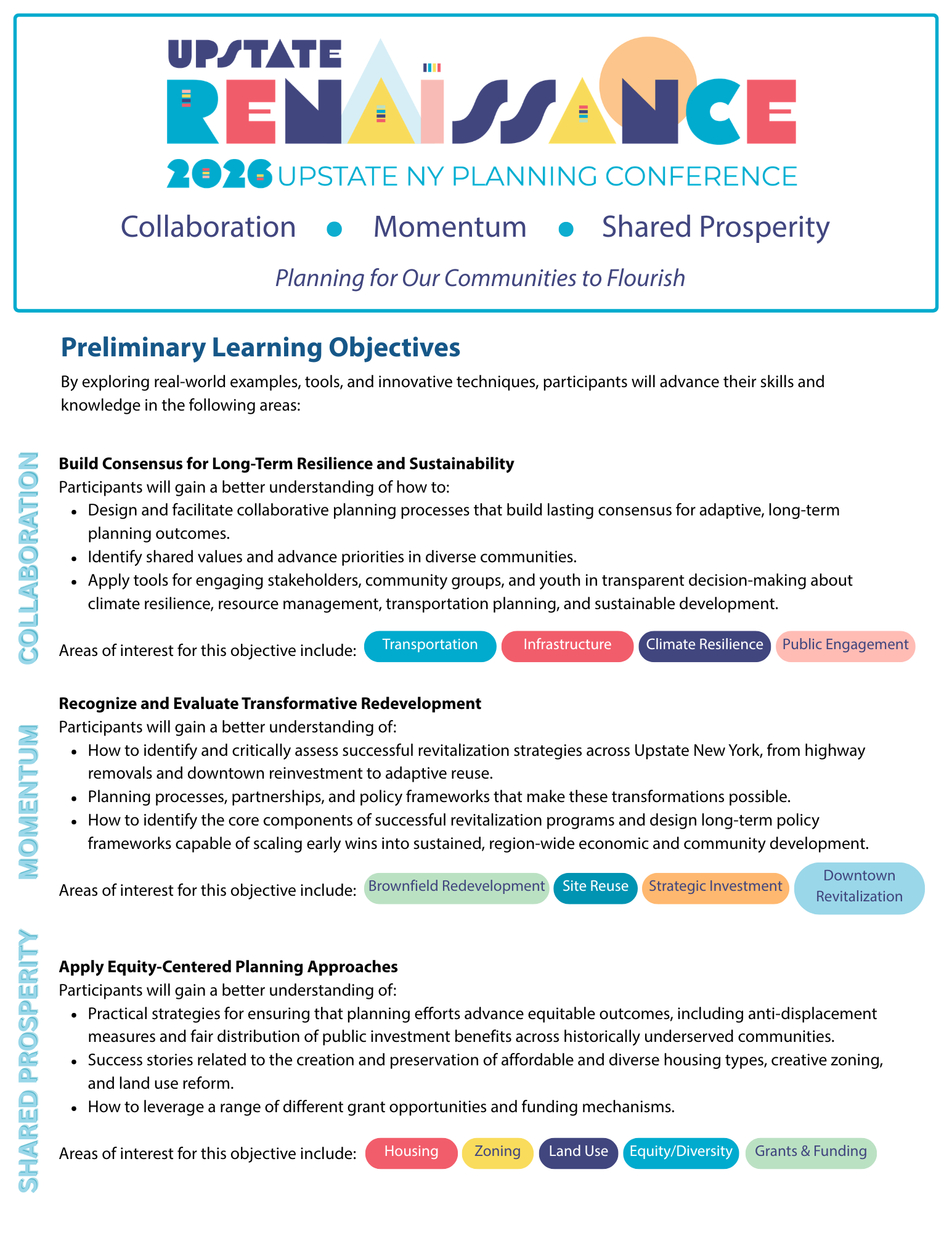 The 2026 conference, Upstate Renaissance: Collaboration, Momentum, Shared Prosperity, will explore real-world examples, tools, and innovative techniques to advance skills and knowledge in the following areas: