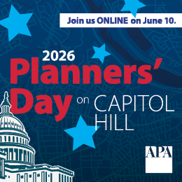 Registration is now open for Planners’ Day on Capitol Hill, the annual advocacy event for planning professionals. This year’s event will be held entirely online on June 10, giving participants the opportunity to engage with Congress, sharpen advocacy skills, and advance housing and zoning reform policies. Registration is open until May 20—don’t miss this chance to make your voice heard!